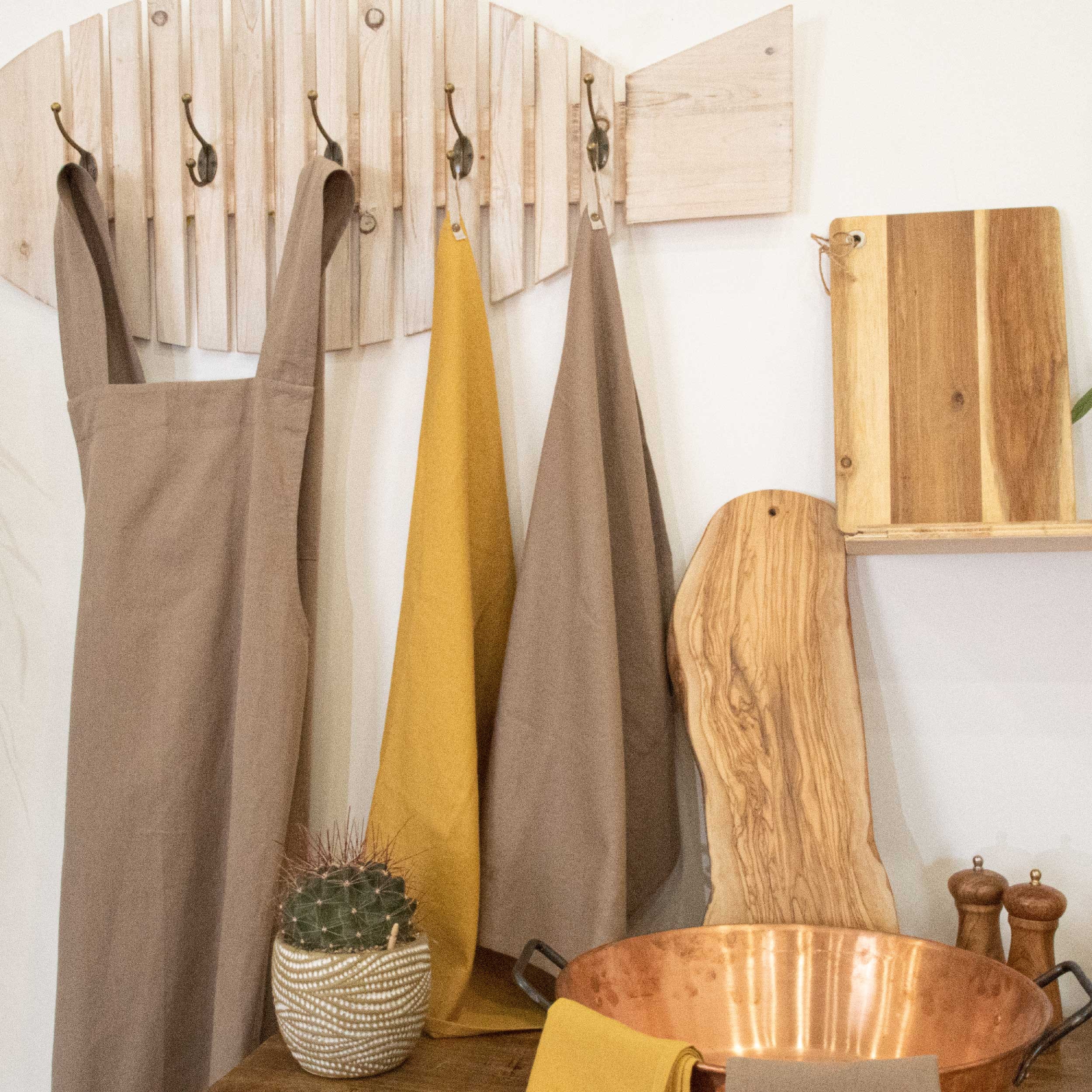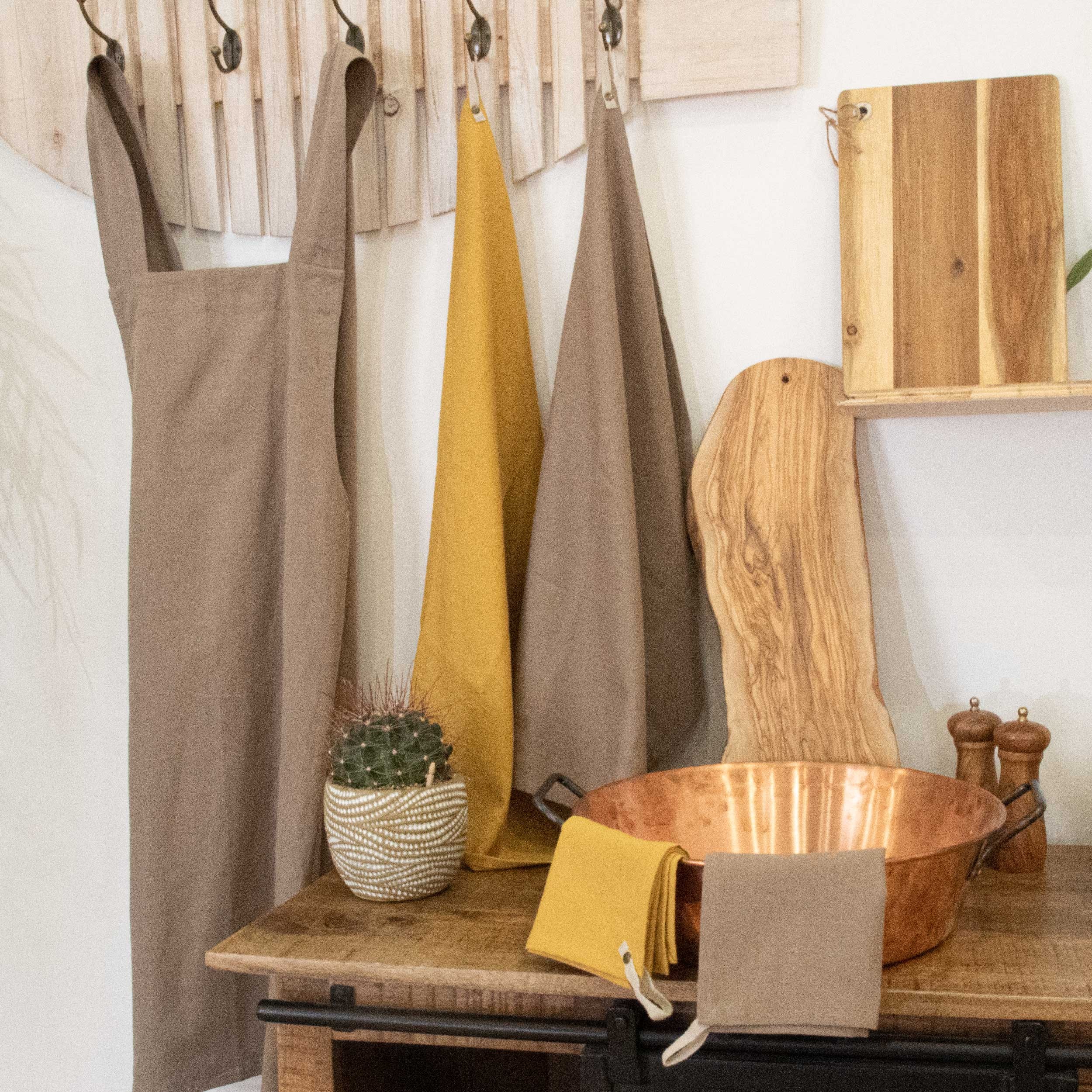 Des tabliers et des torchons en métisse de 180gsm aux couleurs mode et aux finitions soignées