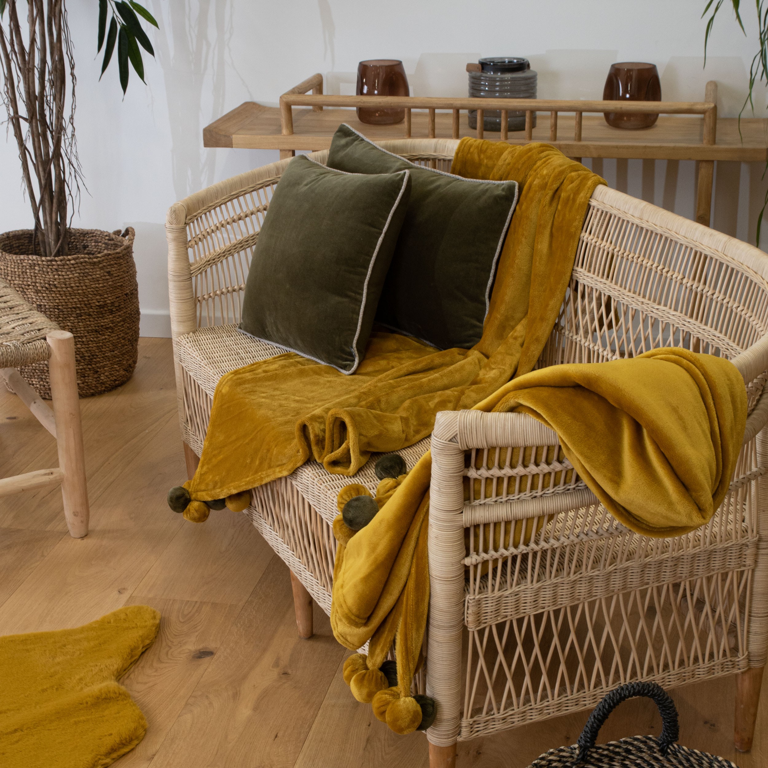 Ce plaid avec ses pompons déco sera très doux et vous invitera à vous y envelopper et à ne plus en sortir. Il est en polyester et se lave parfaitement.5 coloris au choix. Pompons dans les angles. Plaid chaud.