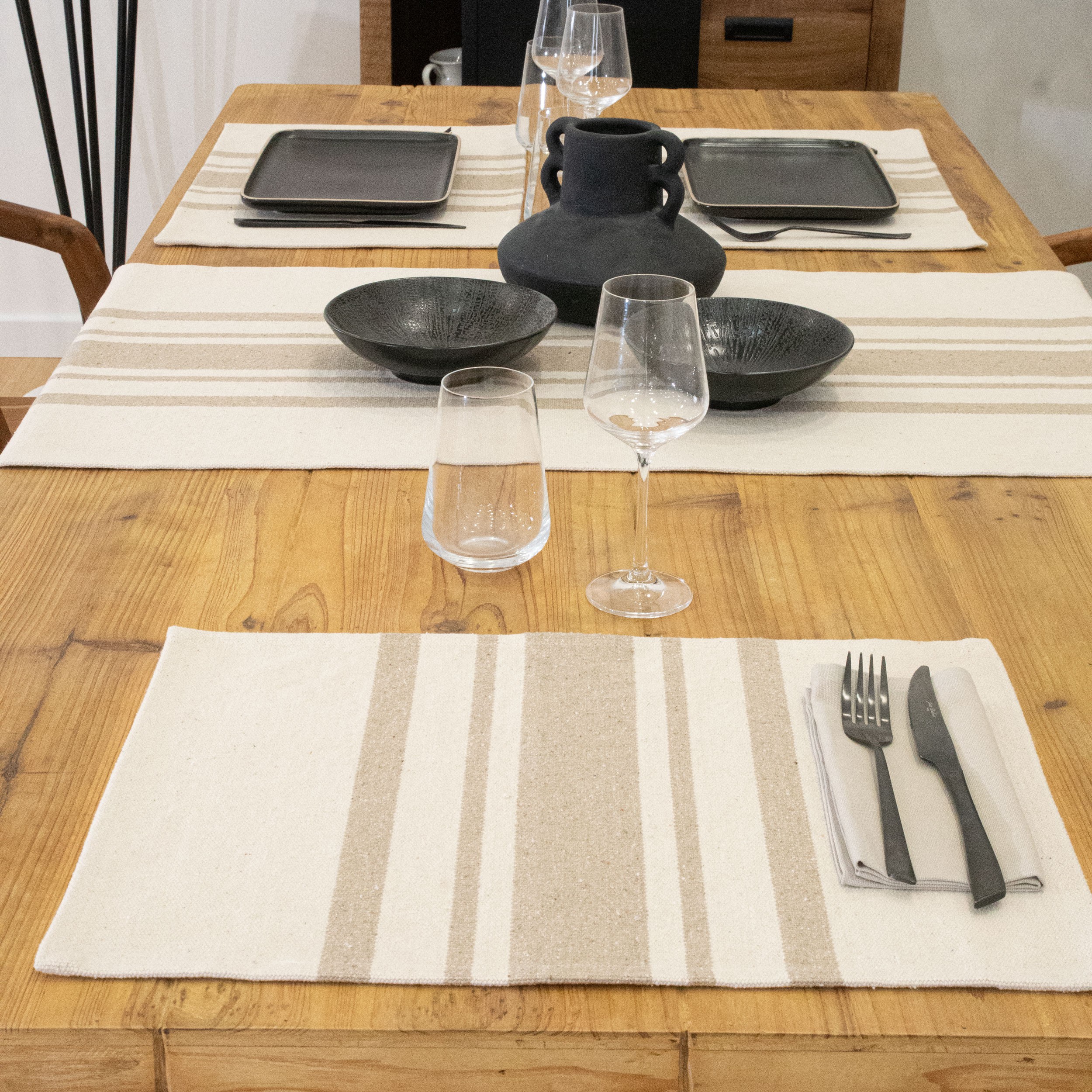 Set de table 38x50 et chemin de table 50x150 en canevas de 550g une jolie rayure esprit d'antan tissé de différentes couleurs viendront donner à votre table un petit petit coté provence