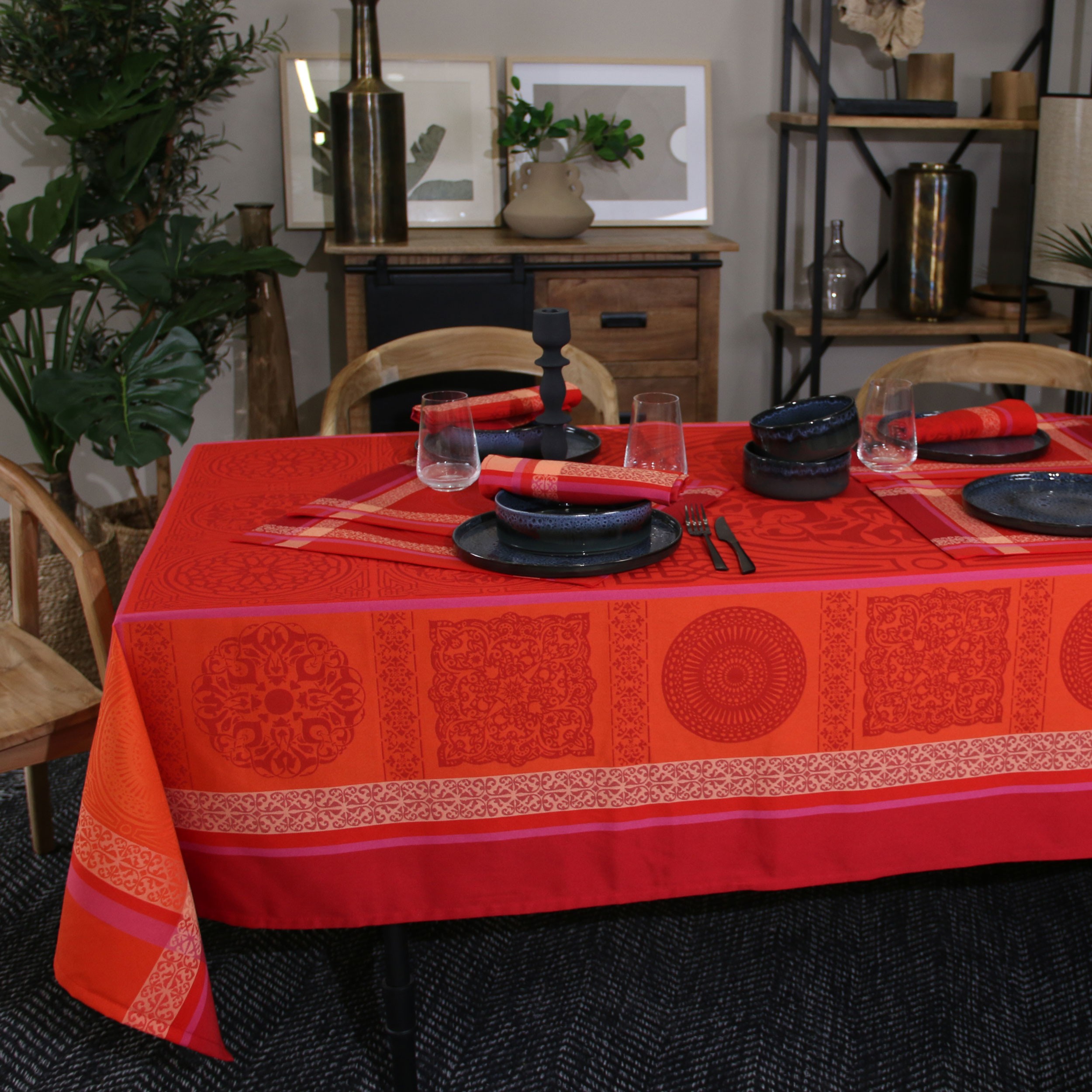Cette nappe de table en Jacquard viendra charmer votre intérieur avec ses motifs carreaux de ciment. Il existe différents produits : nappe de table et serviette de table assorti en différents coloris. Entretien rapide et efficace. Lavage à 40°. Pas de repassage.